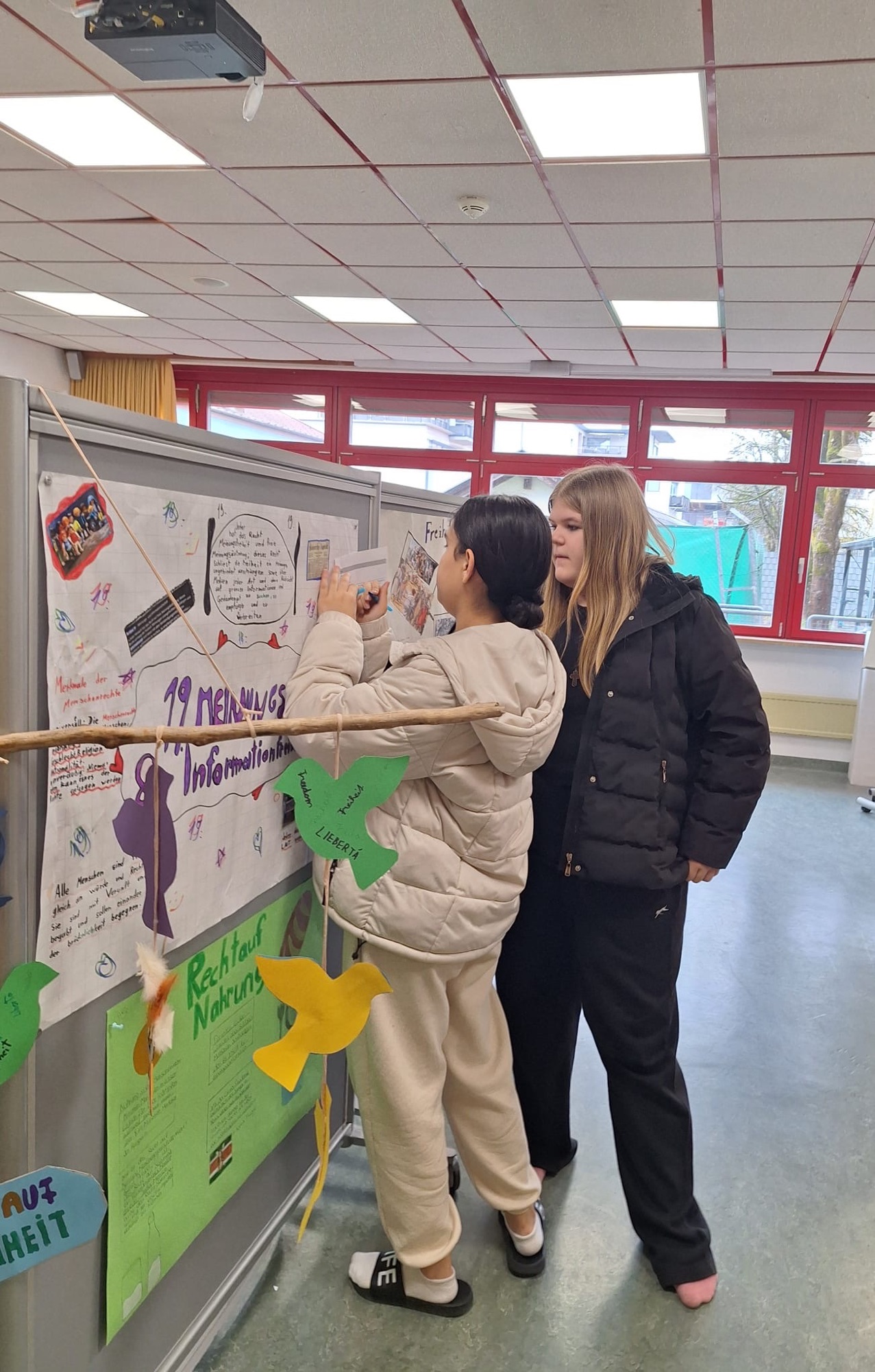 Im Rahmen unseres Projektmonats setzten sich alle Klassen kreativ mit dem Thema Menschenrechte auseinander. Sie bastelten, nahmen Podcasts auf und verfassten Texte, die die Bedeutung der Menschenrechte eindrucksvoll verdeutlichen. Die Ergebnisse wurden in einer Ausstellung in der Aula präsentiert. Ein großes Dankeschön an alle, die mitgemacht haben!
