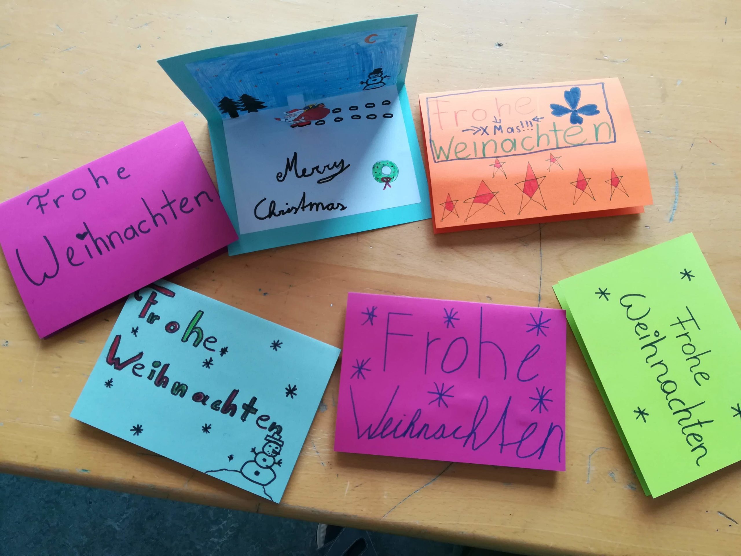 Die ersten Weihnachtskarten aus Portugal, Frankreich, Rumänien, Italien und Polen sind angekommen. Über die Plattform eTwinning haben wir Schulen aus den verschiedensten Regionen Europas gefunden, die mit uns Weihnachtskarten und Weihnachtswünsche in Form von Briefen austauschen.